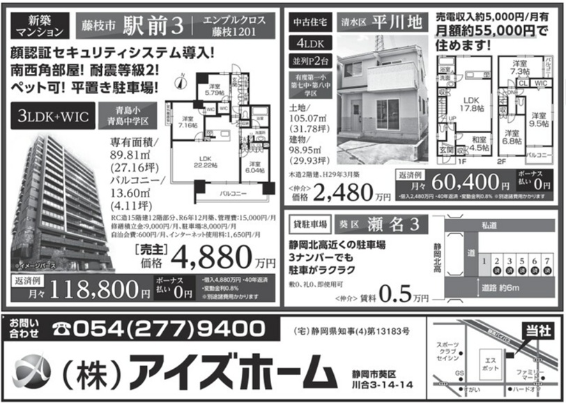 【新築マンション】エンブルクロス藤枝 価格変更いたしました!